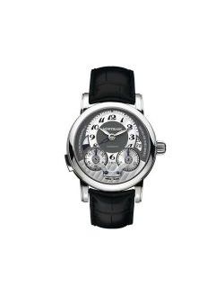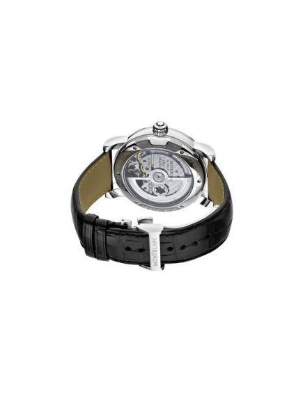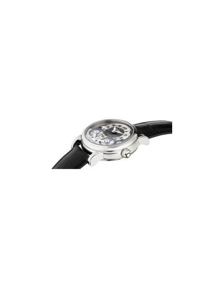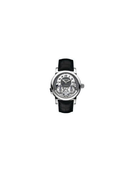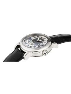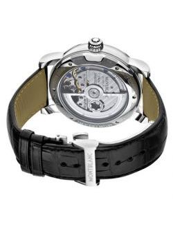 43 mm watch with stainless steel case, Montblanc Calibre MB R200, monopusher chronograph with automatic winding, anthracite-coloured dial with applique hour circle, date display, second time zone with day/night display, chronograph counters with rotating discs.