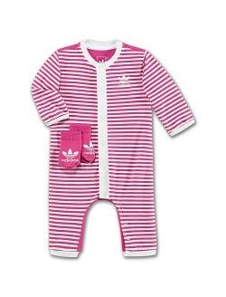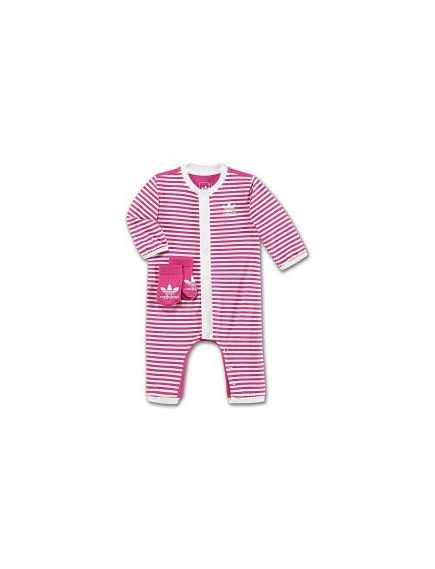 Welcome the new addition with this adidas Originals Gift Set, featuring a one-piece romper and matching socks. The romper has a sleepy-time Trefoil character on the back, while the front bristles with fun in vibrant stripes.