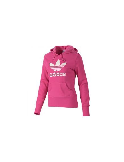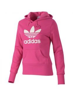 *** This classic women's adidas Originals Trefoil Logo Hoodie is made of comfortable fleece with a drawcord hood, a kangaroo pocket and an outsize logo. The pullover hoodie also features extra-long cuffs and hem for feminine style.