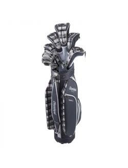 Created for women golfers looking to improve their game, the Bloom 14 Piece set covers all of her equipment needs. Designed specifically for her swing, the 100% titanium Driver and Stainless Steel Fairway woods are designed with today’s modern lightweight and oversized technology to drastically increase distance and consistency-particularly on mishits. The hybrid long irons are hollow and extremely forgiving and are packaged together with the short game simplifying NIBLICK – to make the game even easier to learn. If that isn’t enough, the classically designed mini boot bag has retro details yet modern convenience with ample pocket space and detachable wristlet.